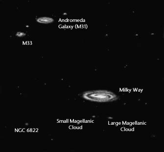 Local Group: The system of galaxies to which our Milky Way galaxy belongs. It is a group of over 30 galaxies, dominated by two large spirals (our Galaxy and Messier 31, the Andromeda galaxy).