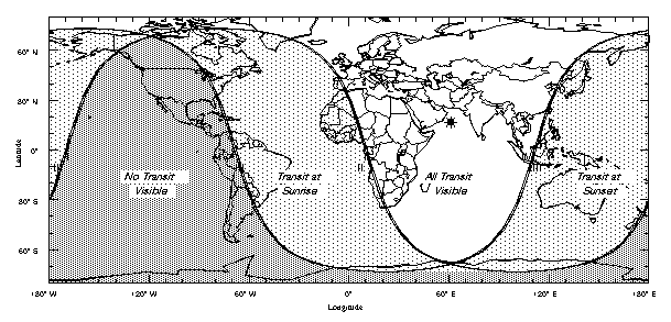 Regions of transit visibility. see "2003 Transit of Mercury" by Fred Espenak at http://sunearth.gsfc.nasa.gov/eclipse/OH/transit03.html below