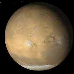 The red planet as seen by Mars Global Surveyor in June 2001. Courtesy NASA/JPL/Malin Space Science Systems.