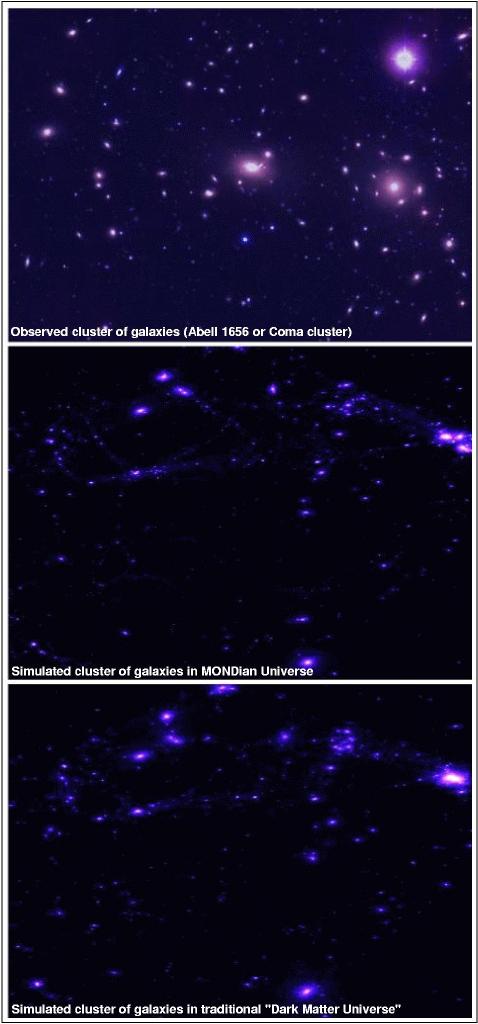 The current paradigm requires that 90 percent of the universe be composed of presently unknown "dark matter". Instead of resorting to dark matter as an explanation for the motions of galaxies and the stars within them, MOND proponents suggest that the laws of gravity need revision. Under MOND, any object whose acceleration drops below some small threshold value receives an extra accelerative "kick" - this kick is tiny, a 1 part in 10 billion effect. An undetectable modification on Earth today, but its effect on the scale of galaxies is profound, potentially eliminating the need to invoke dark matter.