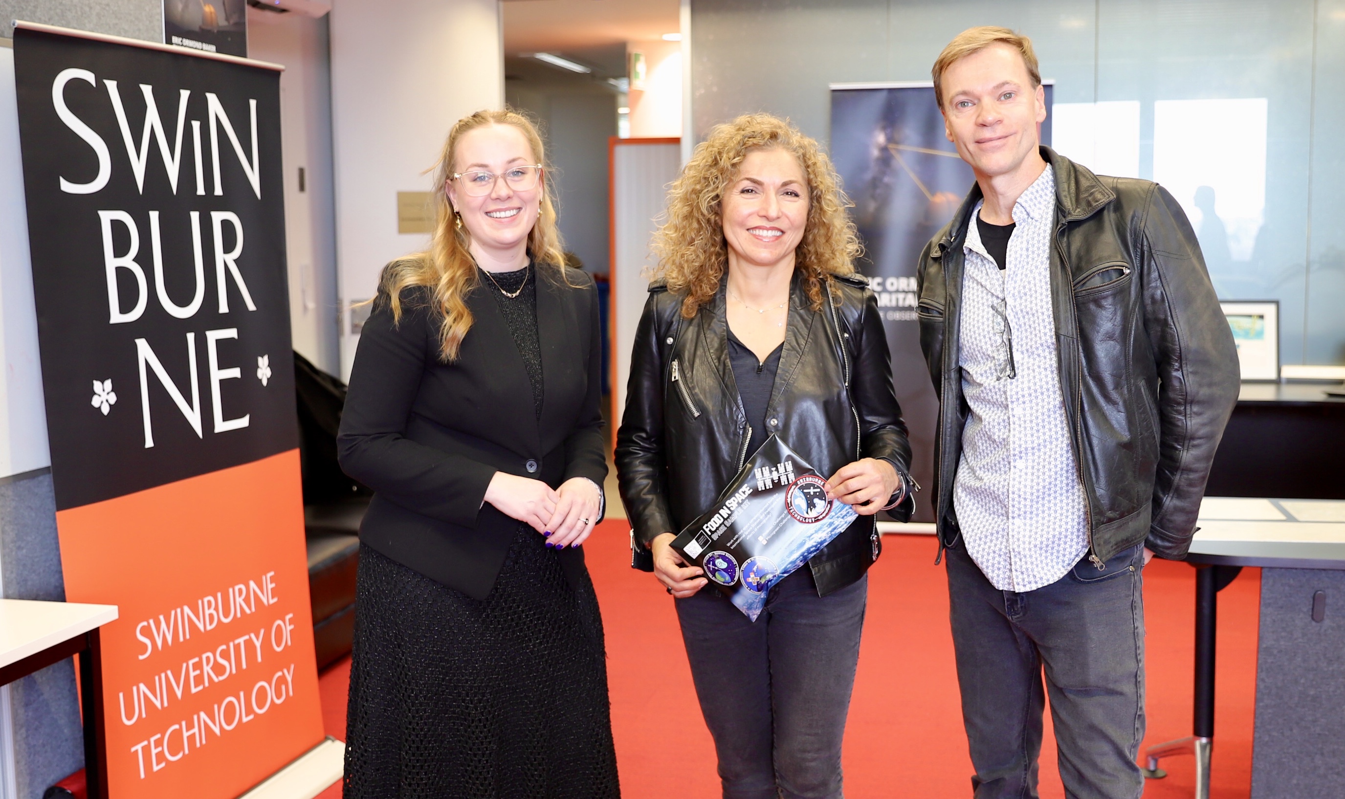 ![]() Former SAO student Anousheh Ansari, CEO of the X Prize Foundation and who spent two weeks as an International Space Station crew member, revisited SAO in 2024. Pictured are Dr Sara Webb, Anousheh Ansari, and Alister Graham. |