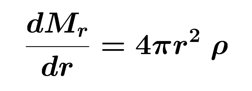 This equation describes the rate of change of the mass, M with distance, r from the stars centre. |