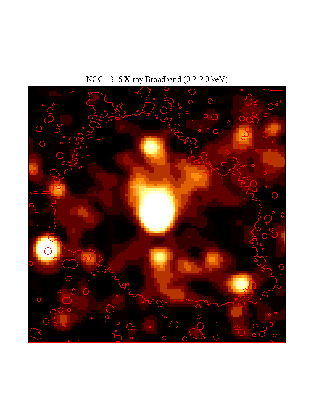 Emission image shows Halpha+[NII] emission from the nuclei of NGC 1316