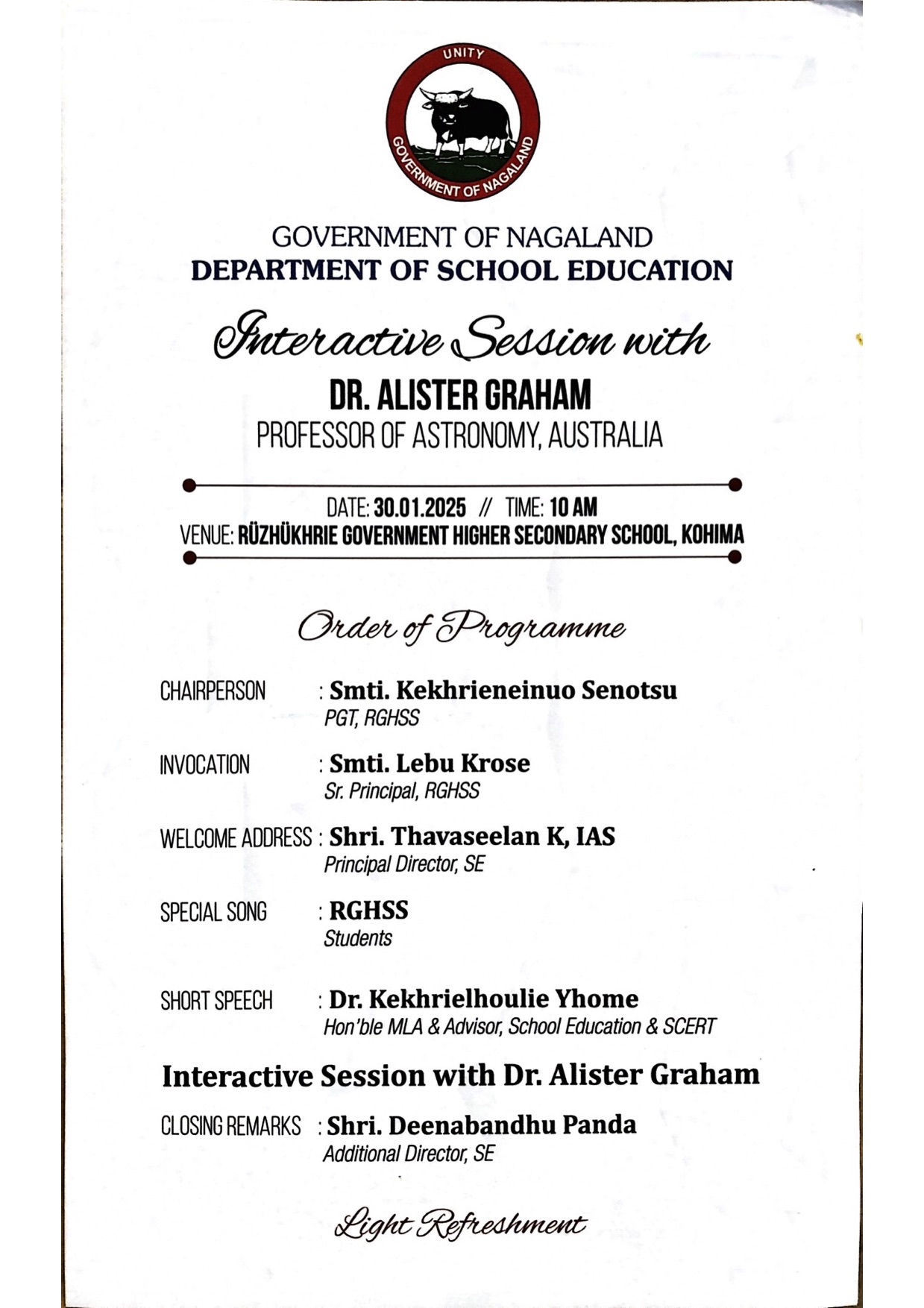 Professor Alister Graham at RGHSS, Kohima, Nagaland, India. Morung Express news article. Science Magazine.