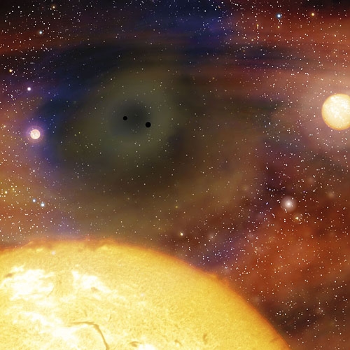 Artist's impression of the evacuated core at the center of a large galaxy due to the damage caused by two coalescing supermassive black holes.